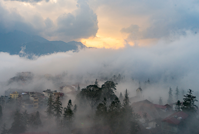 Có mặt tại Sa Pa những ngày này, du khách được chứng kiến vẻ đẹp huyền ảo mang đậm chất Sa Pa - nơi có những hàng thông nhấp nhô trong sương sớm, những bản làng ẩn hiện trong mây.