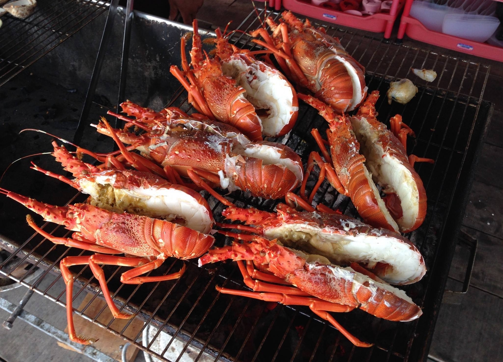 Tôm hùm đỏ hay còn gọi là tôm hùm lửa là một món ăn đặc sản ở Côn Đảo. Loài tôm này sinh trưởng rất chậm và không to bằng các loài tôm khác. Đặc biệt, nó không nuôi được tại các bè mà chỉ có thể đánh bắt từ tự nhiên.