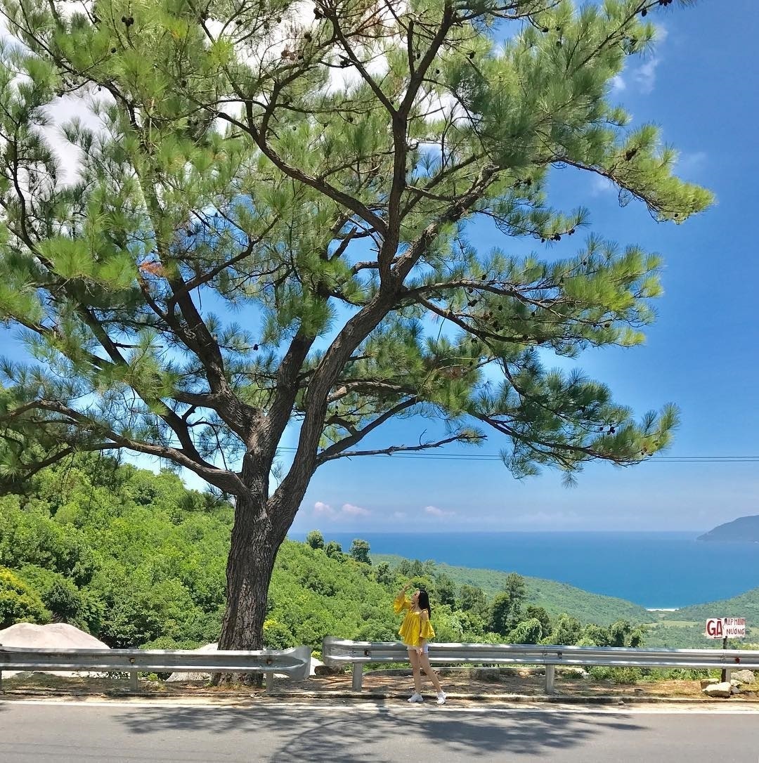 Cây thông bên đường đèo Hải Vân cũng là một trong những cái cây có tiếng. Cây nằm ven đường đèo, trên địa phận thị trấn Lăng Cô, tỉnh Thừa Thiên Huế, chỉ cách đỉnh đèo khoảng 2km. Cây thông với tán rộng nổi trội, một mình đứng bên đường trở thành tọa độ sống ảo lung linh được các bạn trẻ yêu thích.