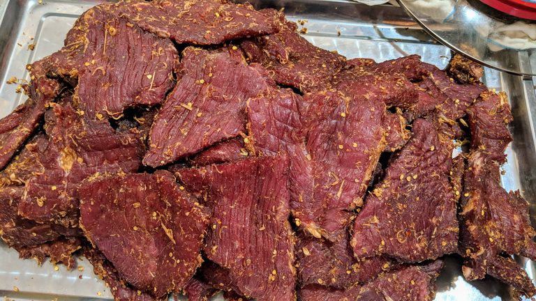 Bò một nắng là đặc sản Phú Yên làm quà được du khách ưa chuộng. Thịt bò làm nên bò một nắng phải là phần thịt thăn và thịt đùi sao cho nạc nhất, cắt lát và ướp với các gia vị như ớt, tiêu, tỏi, hành...đem phơi khô khoảng 30%. Thịt bò qua 1 nắng vẫn giữ được vị ngọt và thơm của mùi thịt. Khi ăn, bạn có thể nướng lên và ăn kèm với các loại nước chấm đa dạng khác như tương ớt, nước mắm pha, muối ớt…