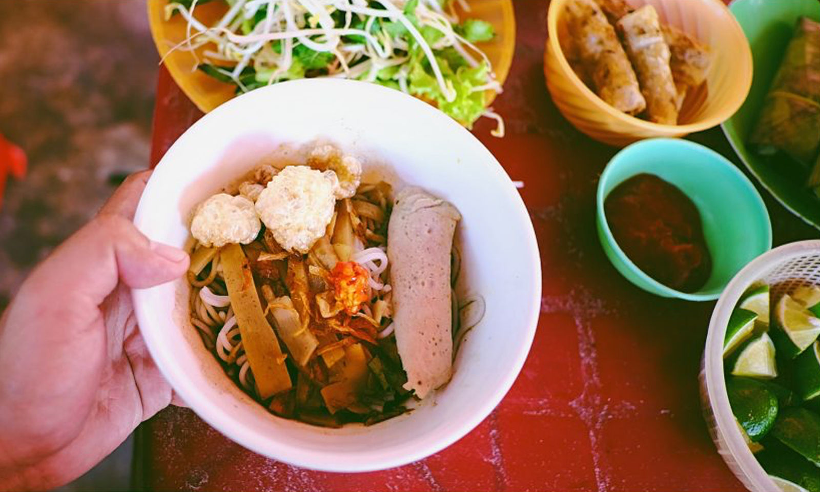 Chẳng phải nơi nổi tiếng về món này như Tuy Hoà – Phú Yên, nhưng cũng rất đáng để thử nha. Con đường Nguyễn Thái Học có bạt ngàn quán bánh hỏi cháo lòng, bạn có thể ghé bất kì quán nào cũng có kể thưởng thức được.