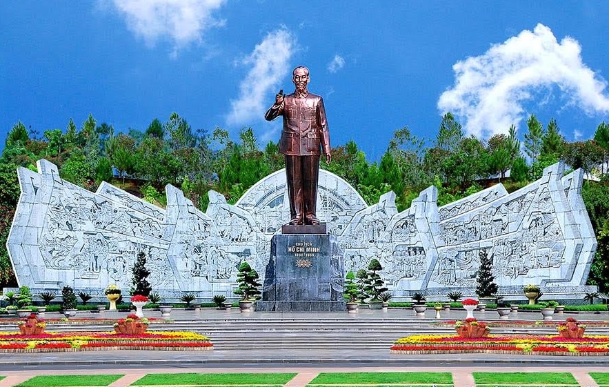 Hình ảnh “vị cha già kính yêu của dân tộc” đứng vững chãi trên bệ, giơ tay vẫy chào đồng bào khắp mọi miền đất nước đã về đây. Phía sau tượng Bác là dãy phù điêu mô phỏng hình hoa sen được cách điệu bằng đá uốn cong, như rừng núi Tây Nguyên bất tận. Một vẻ đẹp mà khiến cho mỗi một du khách khi đến đây phải trầm trò khen ngợi, lưu luyến nơi đây.
