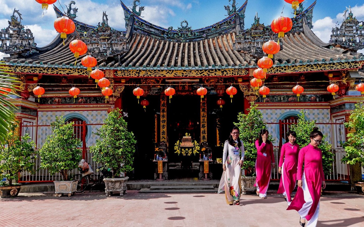 Kiến An Cung là một ngôi chùa cổ có niên đại trên trăm năm tuổi với lối kiến trúc mang đậm phong cách Trung Hoa. Đến Kiến An Cung, du khách có dịp trầm trồ, thán phục những tuyệt tác điêu khắc gỗ. Đó là những bao lam trải dài bên dưới trần chùa, nối liền các cây cột. Tất cả đều do bàn tay tài hoa của các nghệ nhân dân gian Trung Hoa sang thực hiện. Họ cũng dùng vật liệu quan trọng như đá xanh làm ngạch cửa, lư hương... từ Trung Quốc đưa sang cực kỳ kỳ công và tốn kém...