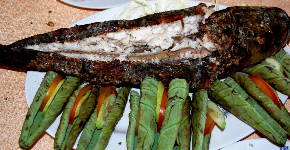 Mỗi mùa nước nổi ở Đồng Tháp là du khách sẽ được thưởng thức món cá lóc nướng cuốn lá sen non. Cá lóc được làm sạch được cuốn chặt bằng lá sen non và nướng trên than hồng. Cá nóng hổi, cho ra khỏi bếp rồi xẻ làm đôi, rắc thêm đậu phộng rang, mỡ hành béo ngậy.