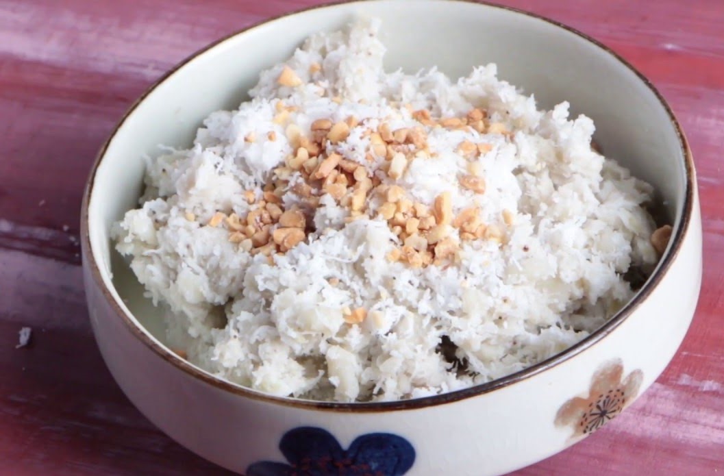 Chuối quết dừa - món đặc sản Tiền Giang được cả người dân đia phương và du khách ưa thích. Chuối phải là loại chuối sứ xanh, già nhưng vẫn giữ được độ dai, tròn trịa và căng vỏ. Muốn món ngon phải cần đến dừa xiêm có lớp cơm ngọt giòn và mọng nước. Chuối được luộc chín trộn với cơm dừa nạo nhỏ thêm chút đậu phông rang trang trí và làm món ăn thêm đậm vị.