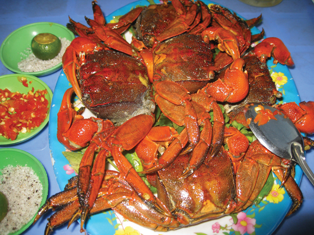 Chù ụ là món ăn mà chúng ta chỉ có thể ăn ở Trà Vinh. Chù ụ thuộc họ nhà cua nhưng xấu hơn cua. Thịt chù ụ rất mền và ngọt không kém cua, ghẹ. Chù ụ có thể làm được rất nhiều món khác nhau như hấp bia, rang me, xào hành, kho nghệ tuy nhiên ngon nhất vẫn là chù ụ nướng than.