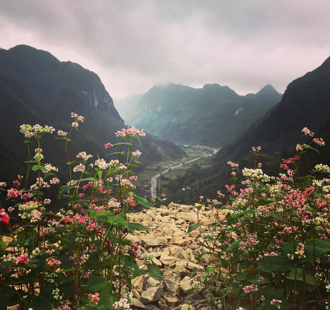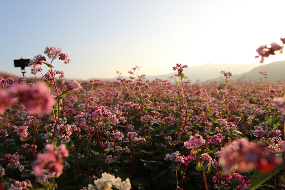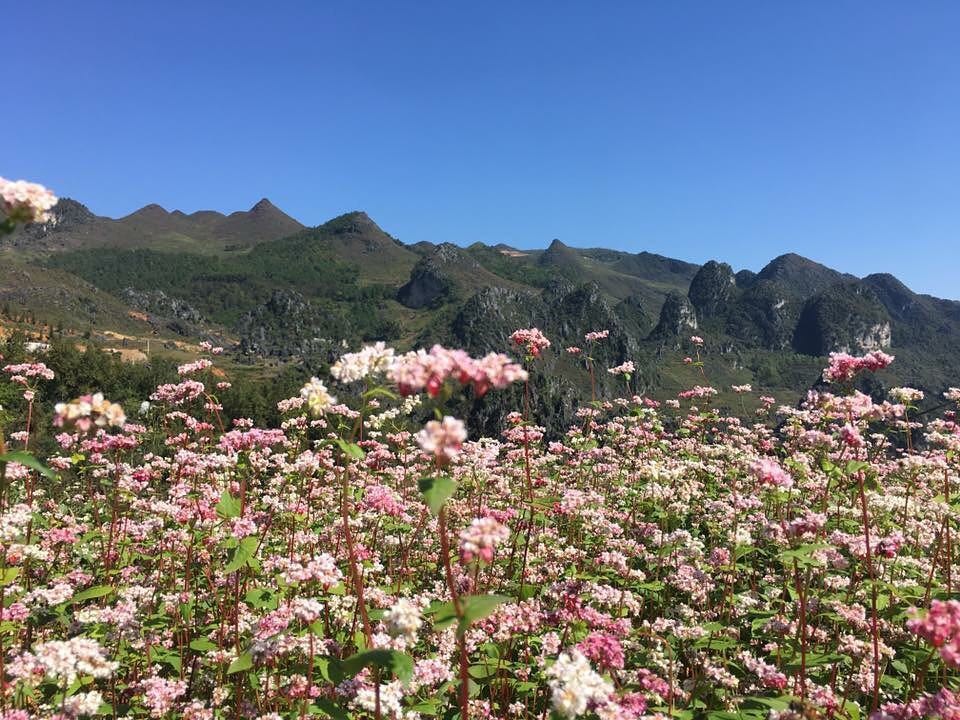 Phải công nhận rằng mảnh đất Hà Giang mùa nào cũng đẹp. Mùa xuân thì tràn ngập sắc hồng trắng của hoa mơ, hoa mận. Mùa thu xao xuyến lòng người bởi mùa lúa chín. Còn thời điểm này đền Hà Giang bạn sẽ đắm chìm trong vẻ đẹp mong manh của hoa tam giác mạch trên những cao nguyên đá.