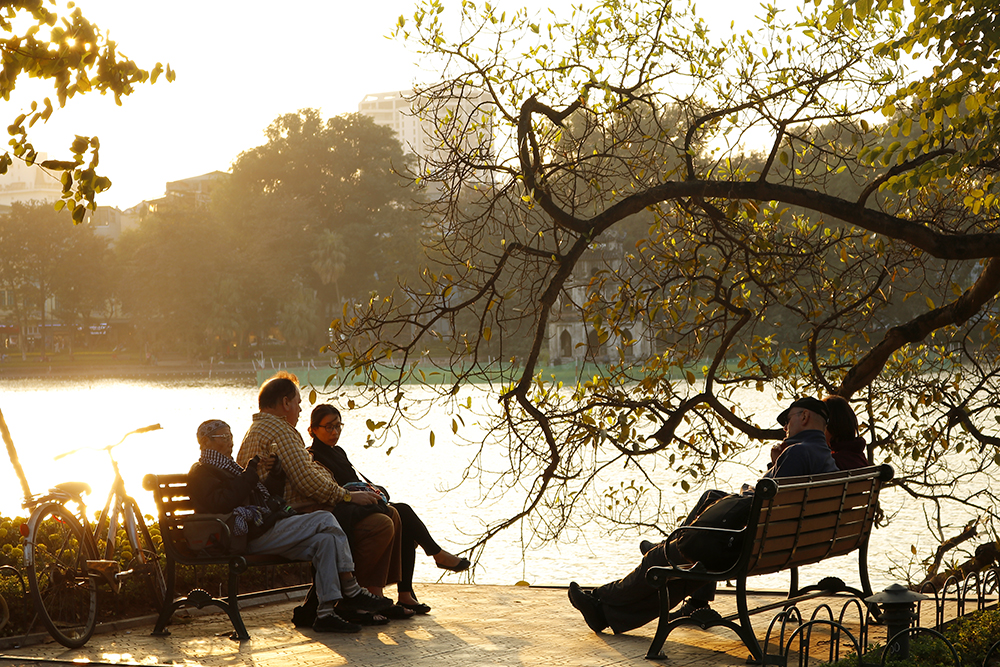 Địa điểm du lịch trong mùa đông không thể thiếu trong danh sách đó là thủ đô Hà Nội. Mùa đông Hà Nội thi vị nhất vào mỗi buổi sáng thức dậy hoặc những khi chiều về. Sáng sáng, nhiều người thường thích ngồi vỉa hè ngắm đường phố, những con người qua lại, chiều về lại khoái nhâm nhi vài món đồ ăn vặt. Nào là trứng ngải cứu, bánh chưng rán, bánh đúc nóng hay bát cháo sườn bán rong bên lề đường.