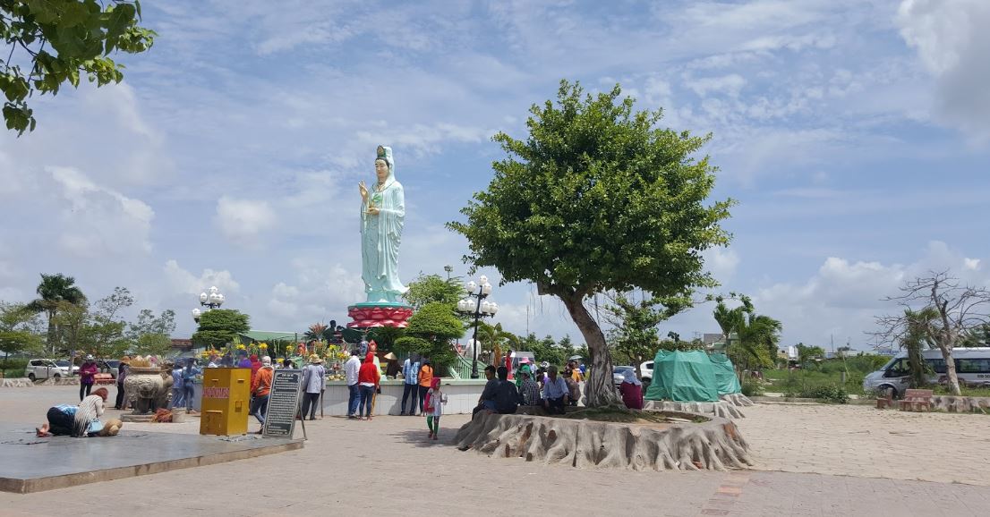 Điểm thu hút ở nơi này chính là tượng Phật Bà Quan Âm cao 11m, nhìn về hướng biển như đang bảo vệ cho người dân trong vùng.