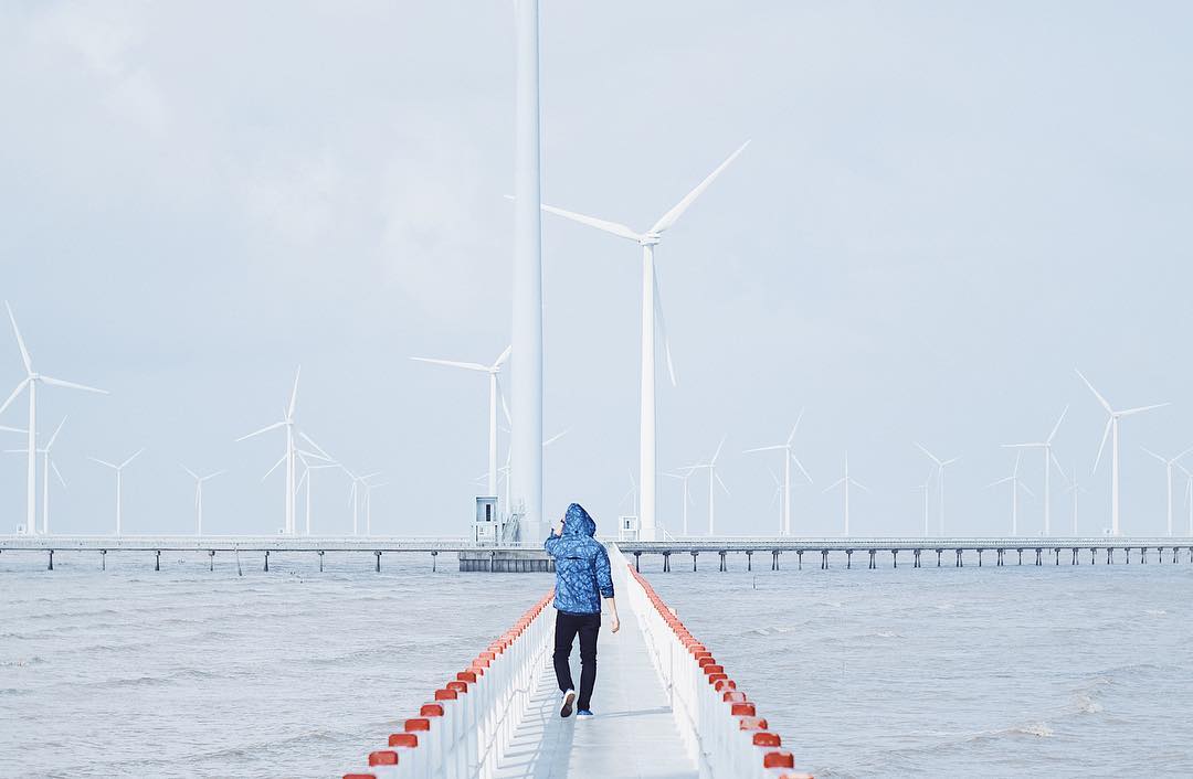 Cánh đồng quạt gió nằm cách trung tâm thành phố khoảng 20km. Khung cảnh nơi đây không khác gì bạn đang phiêu du ở trời Âu. Góc được nhiều bạn trẻ chọn chụp hình nhất là con đường xi măng màu nền và bản thân nổi bật trên khuôn hình. Khi đến đây, du khách cần lưu ý phải xin phép người canh gác mới vào được vì không phải khu vực nào của cánh đồng cũng được vào tham quan và chụp hình thoải mái.