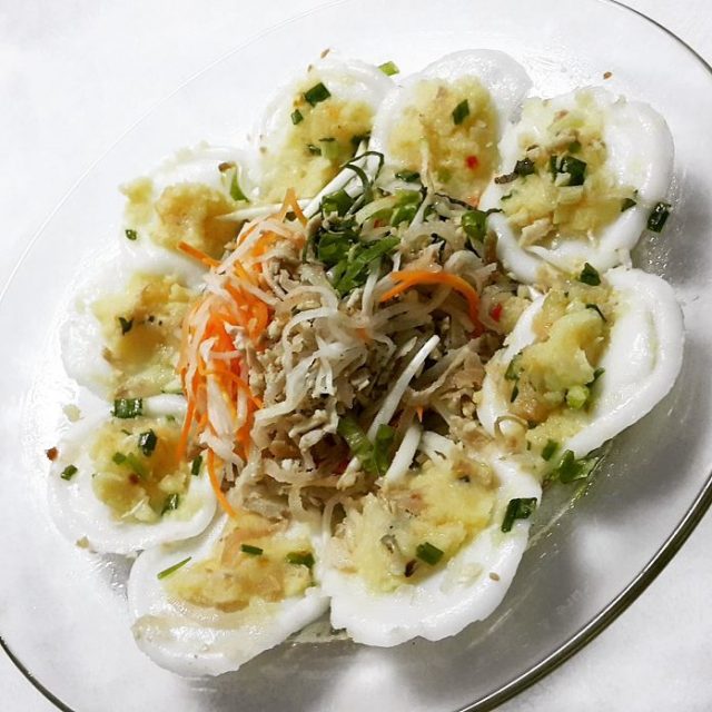Mấy ai thưởng thức món ăn này mà không bị hạ gục ngay từ lần đầu nếm thử. Món bánh bèo bì khác với bánh bèo miền Trung ở chỗ hỗn hợp thịt heo và da heo được băm mỏng trộn với thính và các loại gia vị khác nhau, ăn kèm với bánh bèo và nước mắm thành một hỗn hợp vừa quen lại vừa lạ.