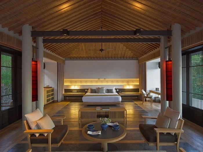 Amanoi Resort có tổng cộng 36 khu nghỉ dưỡng với rất nhiều hạng biệt thự khác nhau để bạn tha hồ lựa chọn: Pavilion rộng 95m2 với tùy chọn Hồ, Núi hay Đại Dương tùy theo sở thích view cảnh thiên nhiên của du khách; Pavilion rộng 125m2 với hồ bơi riêng 30m2 hướng Núi hoặc Biển; 2 bedroom pool villa rộng 500m2; 3 bedroom pool villa rộng 700m2; 4 bedroom pool villa rộng 800m2; 5 bedroom pool villa rộng 1000m2 và đặc biệt là tùy chọn Beach Villa đẳng cấp rất sang trọng. Những căn phòng sang trọng và siêu rộng trên đã phần nào cho thấy Amanoi là một khu resort “không phải dạng vừa đâu” khi được đánh giá cao trong du lịch quốc tế.