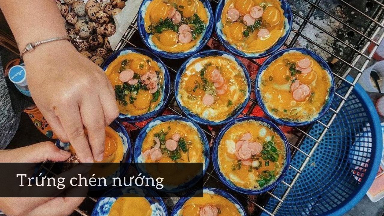 Trứng cút, hành lá, hành khô, phô mai, bò khô, ruốc, hành phi được người Đà Nẵng cho chung vào một cái chén nhỏ xíu, nướng trên than hoa. Tất cả những nguyên liệu này tạo thành món ăn vặt vô cùng nổi tiếng ở Đà Nẵng - trứng chén nướng.