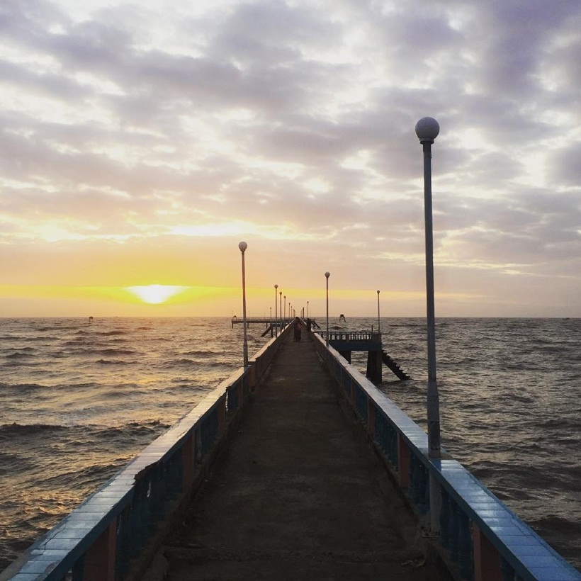 Về với xứ sở Tây Đô dạo chơi bãi biển này, còn gì tuyệt vời hơn khi được hòa mình vào không gian đại dương bao la, hít thở không khí tươi mới căng tràn lồng ngực, và cảm nhận làn gió biển vấn vương trên mái tóc. Và hành trình khám phá sẽ tuyệt hơn, nếu bạn bước chân ra biển Tân Thành trên chiếc cầu nối biển đơn sơ dung dị ở đây. Được làm bê tông cố thép chắc chắn với tổng chiều dài là 300m, mang màu xanh da trời tươi sáng, cây cầu được xem là điểm nhấn mà bạn đừng nên bỏ qua trong hành trình ghé thăm xứ Gò Công, Tiền Giang.