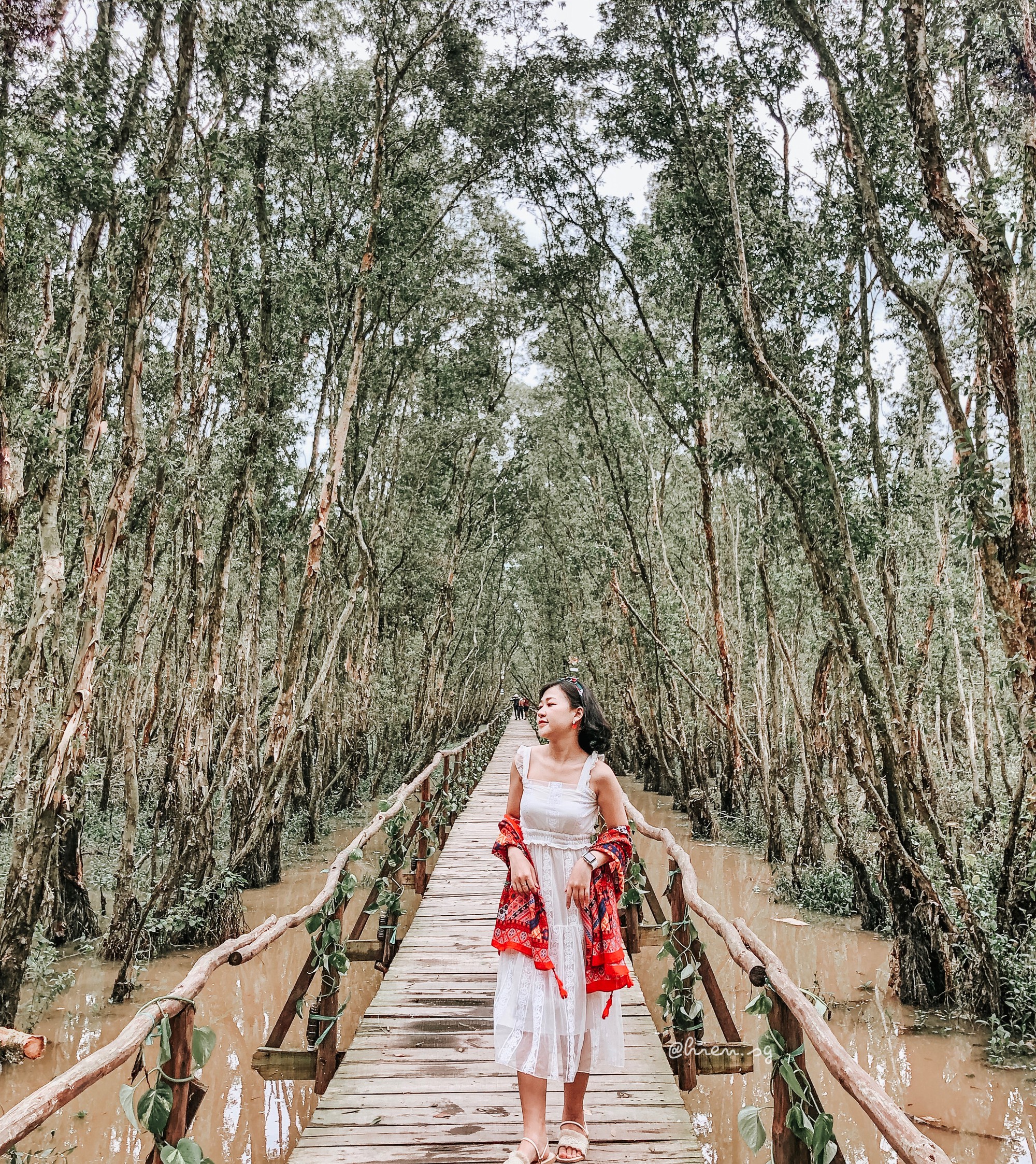 Là cây cầu được thiết kế cách điệu tựa theo dáng “rồng trúc bạch”, đến với rừng tràm Trà Sư, bạn không chỉ được cảm nhận không gian xanh mát trù phú mà còn được khám phá trọn vẹn thiên nhiên nguyên sinh hoang sơ. Nếu du lịch vùng bảy núi – An Giang, bạn nhớ ghé thăm rừng tràm Trà Sư để thả bước trên cây cầu tre đơn sơ và ngắm cảnh non sông nước Việt xinh đẹp.