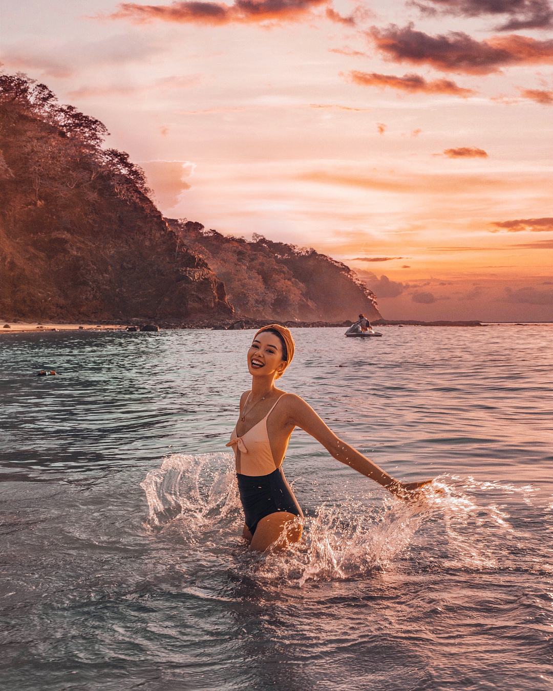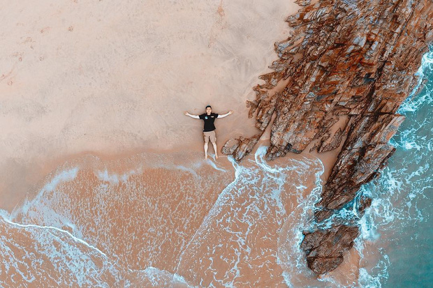 Nghe có vẻ khó nhằn nhưng tạo hình dập dềnh trên mặt nước như đang lạc trôi giữa biển lại khiến cho bức ảnh của bạn trở nên sống động. Nằm nổi trên mặt nước và tận hưởng vitamin sea với nước biển bao bọc và nắng chiếu thì còn gì tuyệt vời hơn. Hay bạn cũng có thể thay thế bằng cách nằm trên bờ cát và chờ cho sóng đánh đến tận ngang người.