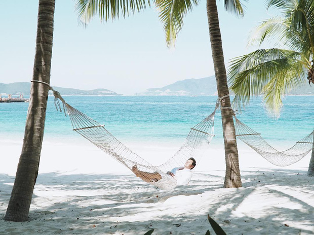 Ngồi trên bãi cát trải dài, ngước mặt lên trời hoặc nằm trên chiếc võng mắc vào cây dừa...giống như đang tận hưởng ánh nắng tuyệt vời của mùa hè hòa vào trong không khí là hương vị biển mặn mòi và làn gió mát rười rượi. Thế là bạn đã có thêm một bức ảnh đẹp cho album biển gọi của mình rồi nhé!