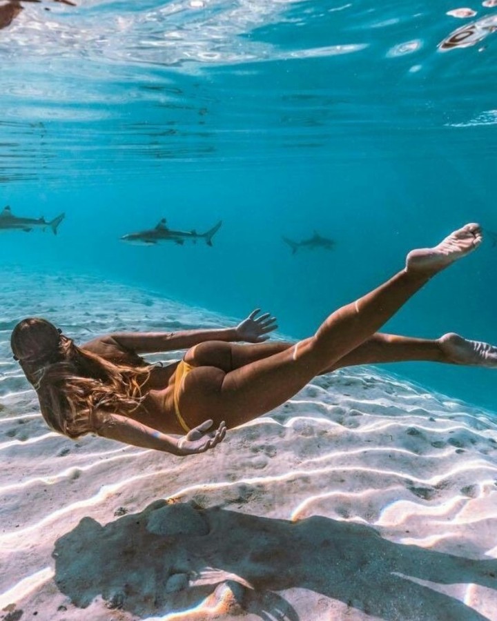 Đi biển ngoài những bức ảnh đẹp trong những bộ bikini sexy hay thân hình 6 múi vạm vỡ thì chụp ảnh theo phong cách lặn dưới biển là một tip cực ấn tượng đấy nhé!