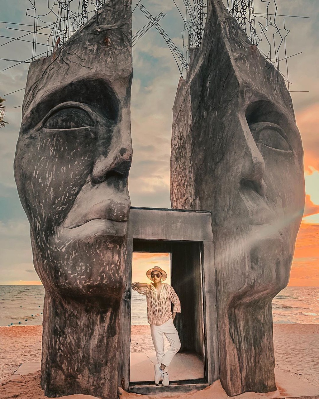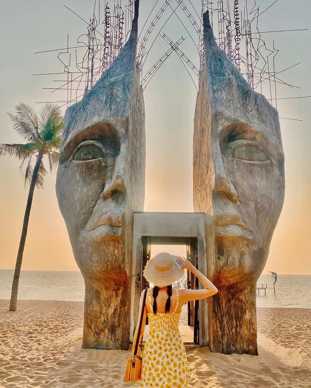 Với thiết kế độc đáo hình mặt người được tách làm đôi, cánh cổng trời này được xây dựng tại Bãi Trường - Phú Quốc – Kiên Giang. Cổng trời có mặt hướng về đất liền, ở giữa là một lối đi nhỏ để du khách có thể đứng chụp hình, công trình nghệ thuật này đã trở thành địa điểm check-in quen thuộc của "hội sống ảo" khi tới đảo ngọc.
