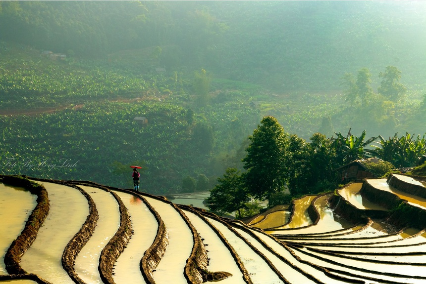 Y tý đẹp không chỉ bởi mùa lúa chín vàng trên những nương ruộng bậc thang mà đến Y Tý vào mùa nước đổ du khách sẽ được chiêm ngưỡng những gam màu sắc sáng tối thật ấn tượng.