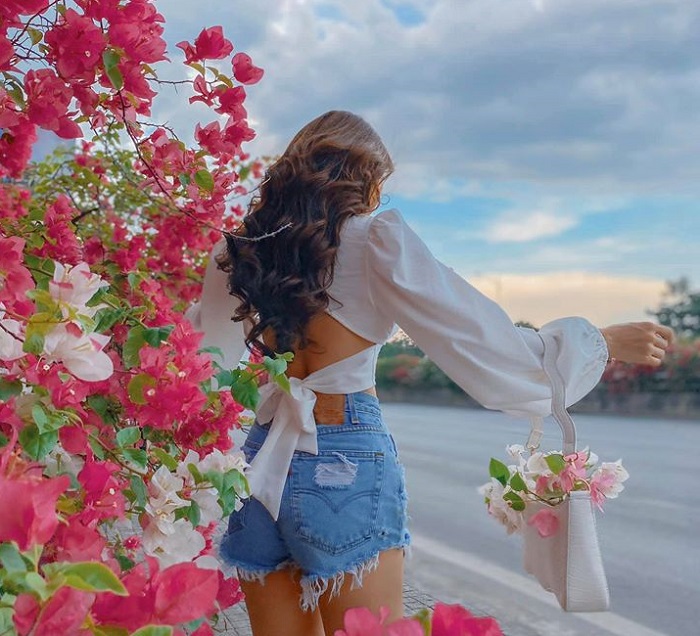 Và nếu bạn muốn sở hữu những tấm hình gây thương nhớ khi chụp cùng biển hoa giấy rạng rỡ nơi đây thì bạn nên đến đây vào sáng sớm khi những ánh vàng ươm le lói qua giàn hoa giấy cùng thời tiết thoáng mát tương đối dễ chịu. Hơn nữa, những bộ váy vóc, trang phục đơn sắc tươi sáng cũng là gợi ý giúp bạn dễ dàng tạo điểm nhấn giữa rừng hoa đậm màu.
