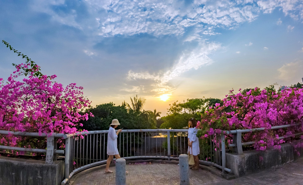 Mùa hè đển rồi, còn gì tuyệt vời hơn khi được dạo bước bên rừng hoa giấy lãng mạn, tận hưởng không gian xanh mát trong lành và chiêm ngưỡng dải lụa mềm bừng nở vắt quang dòng sông, như gọi mời mọi người đến dừng chân và chiêm ngưỡng vẻ thương nhớ đó.