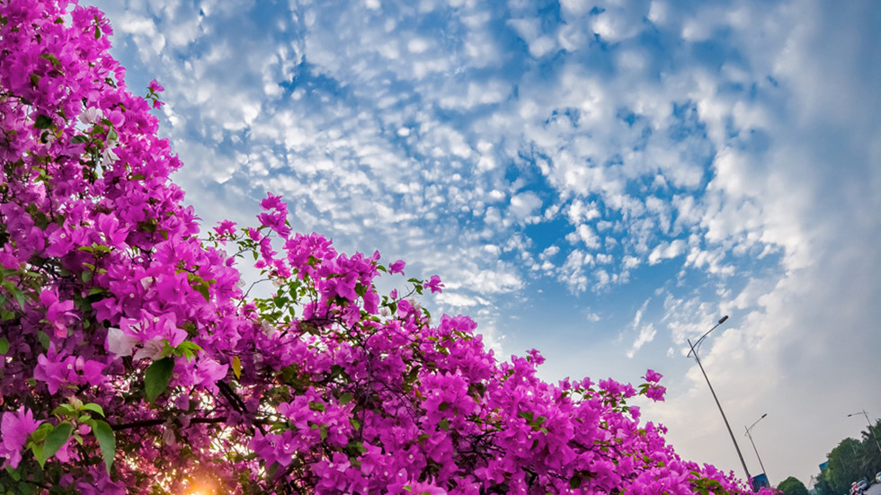 Ecopark không chỉ khiến người ta nhớ đến về khu đô thị thông minh phủ rợp bóng cây xanh kéo dài tít tắp, những ngôi nhà hiện đại tiện nghi được bao quanh dòng nước uốn lượn mát lành… mà Ecopark còn hớp hồn du khách bằng những mùa hoa thương nhớ chẳng khác nào thế giới cổ tích mộng mơ. Một trong số đó là con đường hoa giấy tím biếc rực rỡ đua nhau khoe sắc nổi bật trên nền trời xanh ngát hút hồn.