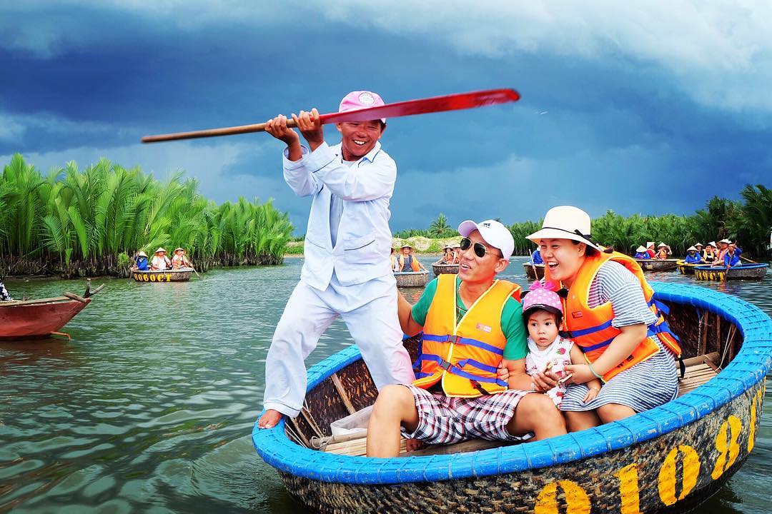 Đi thuyền thúng với giá vé là 150.000Đ/ thuyền (thuyền có thể đi được 2 người). Với 150.000 vé thuyền này bạn sẽ được trải nghiệm tham quan khu rừng dừa trong 45 phút.
