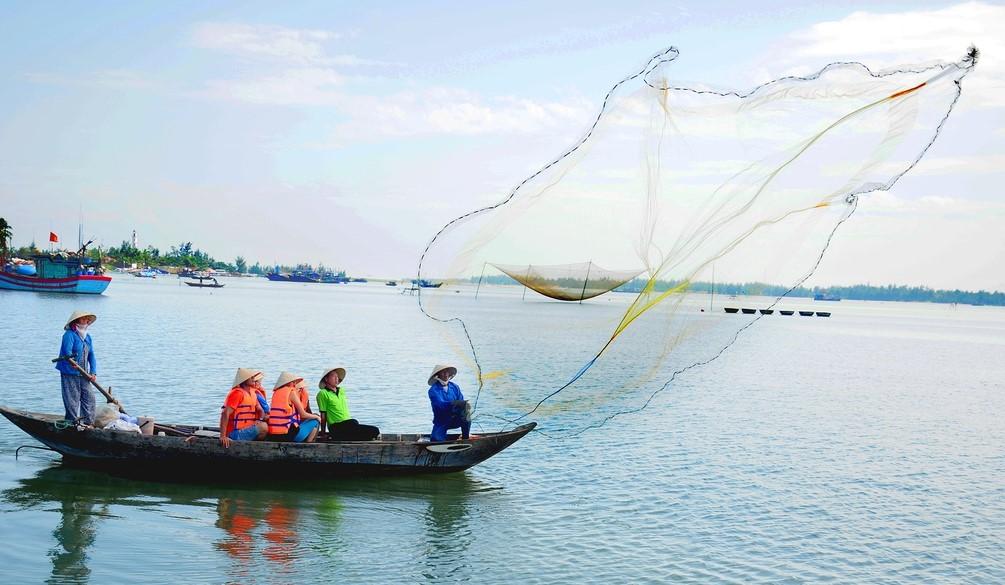 Du khách cũng có thể thử sức chèo thuyền thúng hoặc thử sức với trò quăng lưới bắt cá (tiền tùy tâm cho chủ lưới nhé).