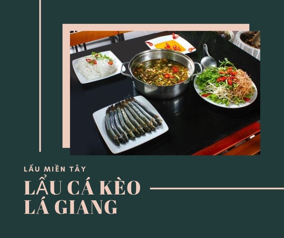 Lẩu cá kèo lá giang là món ngon của người miền Tây Nam Bộ vào mỗi mùa nước lên. Cá kèo mùa nước nổi vừa béo vừa ngậy, thịt lại săn chắc. Ngon nhất cũng không phải là những con to mà chỉ cần lớn bằng đầu ngón tay người lớn là đủ độ. Lẩu cá kèo bỏ thêm lá giang chua tạo được vị vừa chua chua, ngọt ngọt nhưng vừa đủ béo. Lẩu cá kèo chẳng thể nào thiếu được vị cay của ớt và chút mặn của muối để nồi lẩu thêm tròn vị. Lẩu cá kèo thường được ăn kèm với rau xanh. Nào là kèo nèo, rau đắng, rau rút, ngò gai, muống chẻ, hoa chuối…nhúng vào nồi lẩu đang sôi và chỉ cần rau chín tái là có thể thưởng thức ngon lành. Trong không khí lạnh lạnh của mùa mưa ở miền Tây hãy cùng bạn bè quây quần thưởng thức lẩu cá kèo lá giang để tình bạn thêm gắn kết.