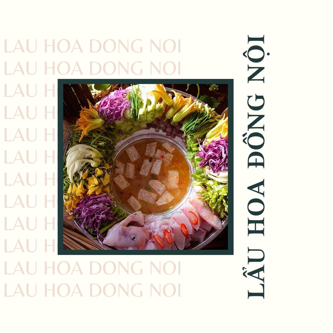 Lẩu hoa đồng nội phong phú với các loại rau, hoa như hoa bí, lục bình, bông điên điển, súng,...