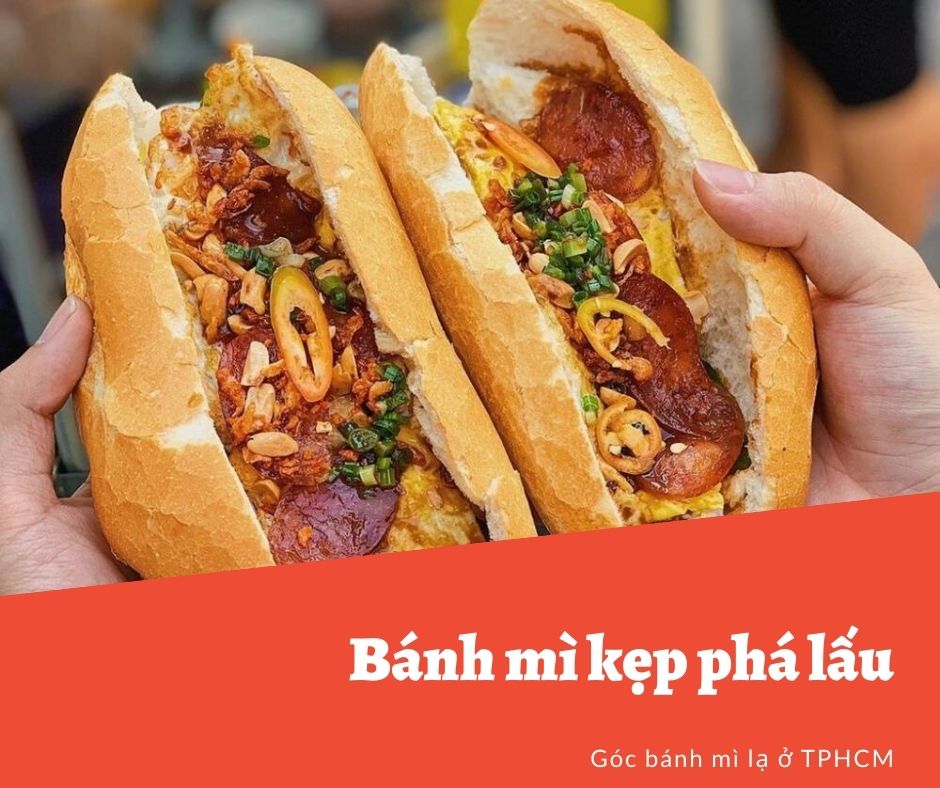 Bánh mì kẹp phá lấu là món bánh mì phổ biến được bán ở TP HCM. Bánh mì phá lấu sở hữu lớp nhân đặc biệt với sự giòn dai của tai heo, mềm béo của bao tử, mề, phèo kèm hành, dưa leo và sốt ớt cay xè. Bạn có thể thưởng thức món bánh mì này tại một vài quán như bánh mì A Nhiều, bánh mì phá lấu Tâm Ký, bánh mì phá lấu Tiều…