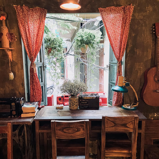 Quán có không gian nhỏ xinh và được trang trí đơn giản nhẹ nhàng: những bộ bàn ghế gỗ, kệ sách nhỏ, những chiếc đàn ghita, những quyển sách cũ, song sắt cửa sổ…Tất cả đều bình dị, cảm giác chỉ cần ngắm nhìn chúng thôi ta cũng sẽ thấy yên bình.