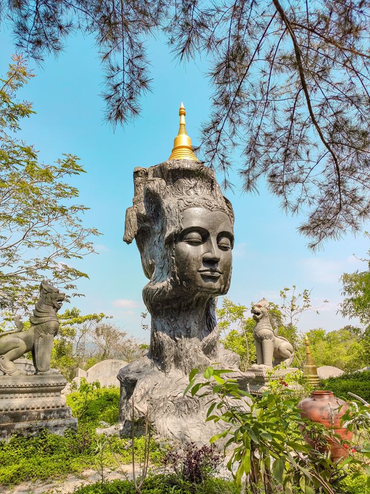 Chùa Thiền Lâm ở Huế còn được biết đến với cái tên “Chùa phật đứng - chùa phật nằm”. Ngôi chùa gây ấn tượng với du khách tham quan vãn cảnh chùa bởi 2 pho tượng phật một đứng - một nằm to lớn. Ngôi chùa rộng với nhiều pho tượng được đặt xung quanh không gian của chùa, ẩn hiện giữa rừng thông tạo được cảm giác thanh tịnh và yên bình cho du khách khi đến đây.