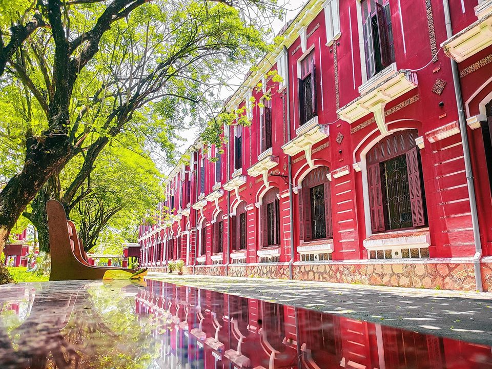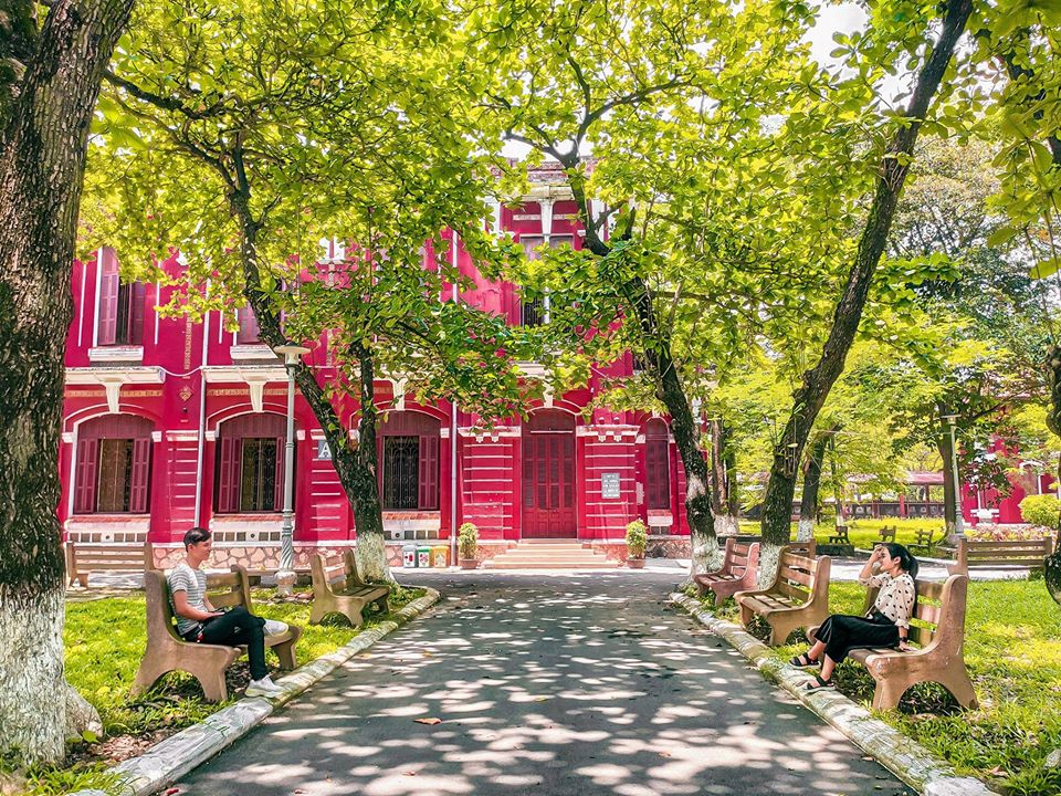 Trường Quốc Học Huế không chỉ gây ấn tượng bởi đây là ngôi trường đào tạo nhiều học sinh giỏi mà còn bởi vẻ đẹp kiến trúc ấn tượng của ngôi trường này. Quốc học Huế với những tòa nhà đỏ xen trắng ẩn hiện trong một không gian xanh mát của những cây cổ thụ được trồng từ khi thành lập trường đến nay. Ghé thăm ngôi trường nổi tiếng này, ngồi trên hàng ghế đá và tưởng tượng về thời học sinh của mình ngày trước chắc chắn bạn sẽ có nhiều cảm xúc khó tả.