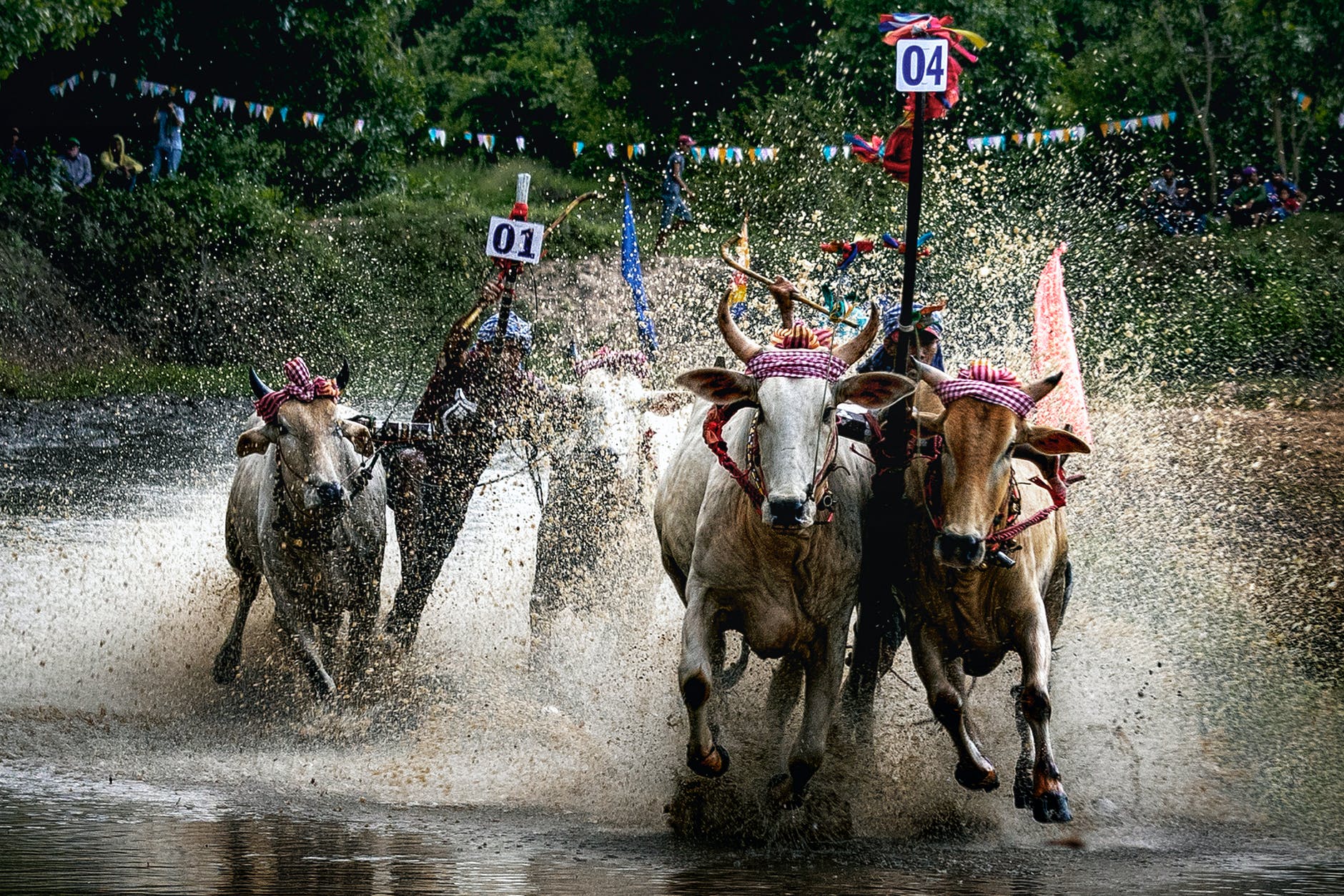 Ở An Giang cứ vào cuối tháng 8, đầu tháng 9 âm lịch là đồng bào Khmer lại mong chờ lễ hội đua bò Bảy Núi náo nhiệt. Trong tiếng trống, tiếng kèn cùng tiếng cổ vũ của người dân những đấu sĩ bò ra trận và chạy đua trên đường ruộng chuyên nghiệp.