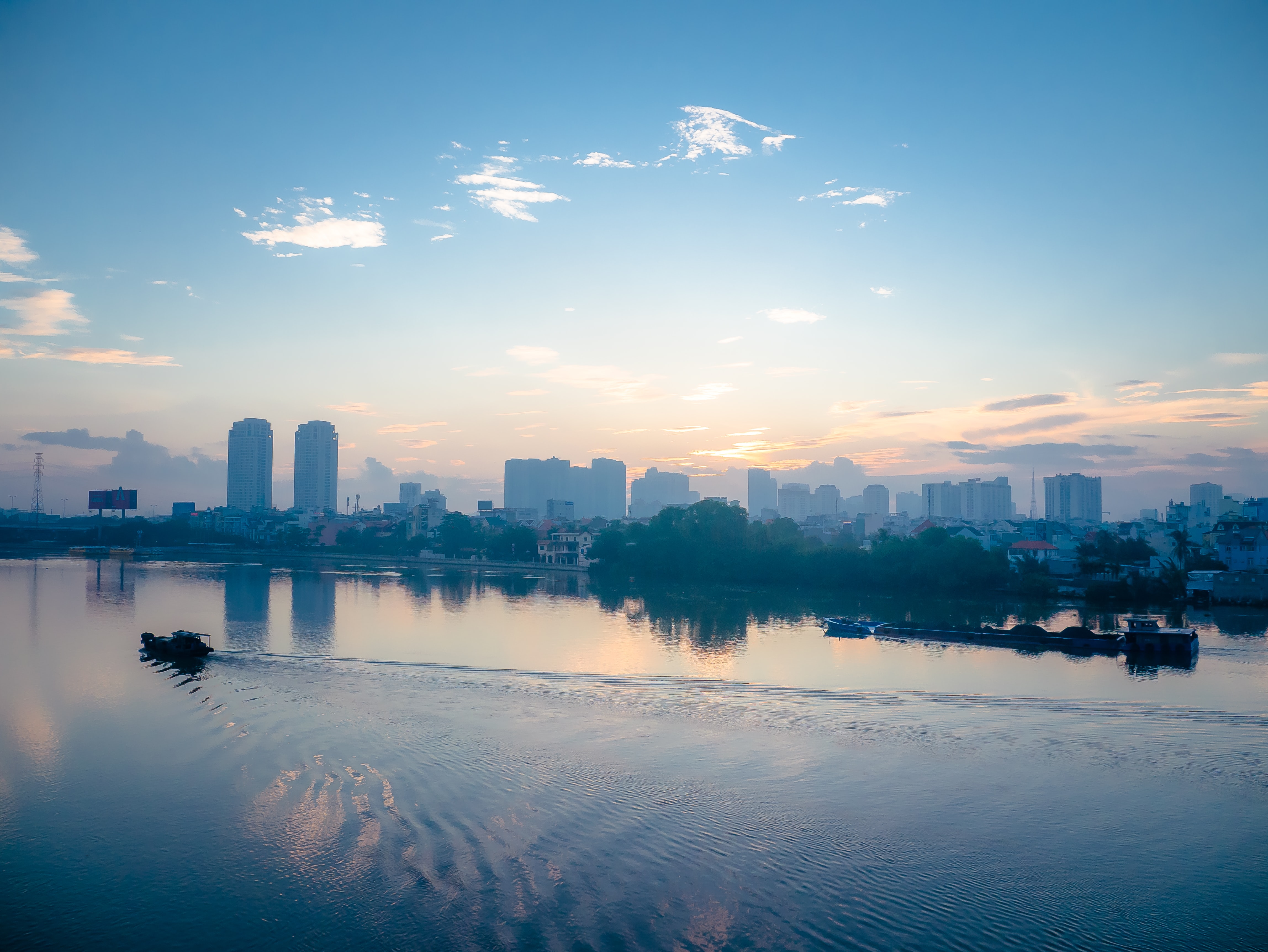 Nếu có cơ hội, đừng bỏ lỡ cơ hội ngắm hoàng hôn buông mình tuyệt đẹp trên sông Sài Gòn! Cảnh tượng nhìn ngắm mặt sông Sài Gòn êm đềm tĩnh lặng và trọn vẹn vẻ đẹp hoàng hôn buông dần trên mặt nước cũng đủ để bạn khép lại một ngày làm việc bằng những dư vị khó quên. Không dừng lại ở đó, bạn còn được chiêm ngưỡng vẻ đẹp sang trọng hiện đại của các khu đô thị phức hợp nổi tiếng như Vinhomes Central Park và Vinhomes Golden River.