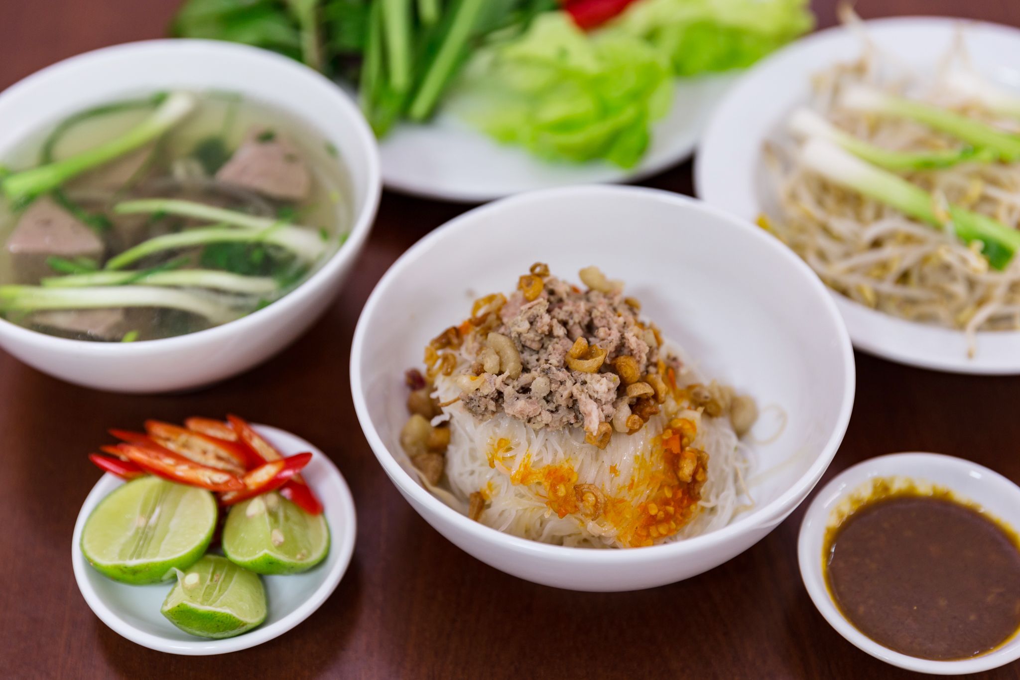 Chính vì sự đặc trưng của món ăn này nên có rất nhiều quán nổi lên. Mỗi một quán mang một hương vị khác nhau. Nhưng tựu chung lại vẫn có gà xé sợi, thịt heo băm nhỏ, hành khô phi vàng. Phần nước dùng nấu từ thịt gà, thịt bò…