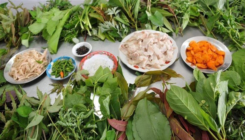 Món ăn này được kết hợp một cách kỹ lưỡng giữa rau rừng với mắm thịt, nem thính thơm ngon được cuộn vào trong. Các loại rau rừng ở đây có vị khác với các loại rau dùng để nhúng lẩu khác. Chính nhờ cái vị cay nồng đượm đó sẽ mang đến cảm giác tươi mới cho người thưởng thức.