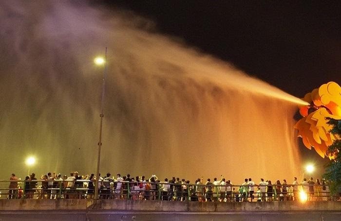Thong dong trên cây cầu đẹp nhất Đà thành này, các đôi tình nhân còn có dịp được tận hưởng màn phun lửa và phun nước hoành tráng “có một không hai” tại đây. Để có thể chiêm ngưỡng trọn vẹn màn biểu diễn ngoạn mục này, du khách hãy đến trước 21h00 và chọn cho mình những địa điểm đẹp nhất trên cầu hay trên đường Trần Hưng Đạo, đường Bạch Đằng để ngắm nghía tận mắt màn biểu diễn độc đáo này nhé.