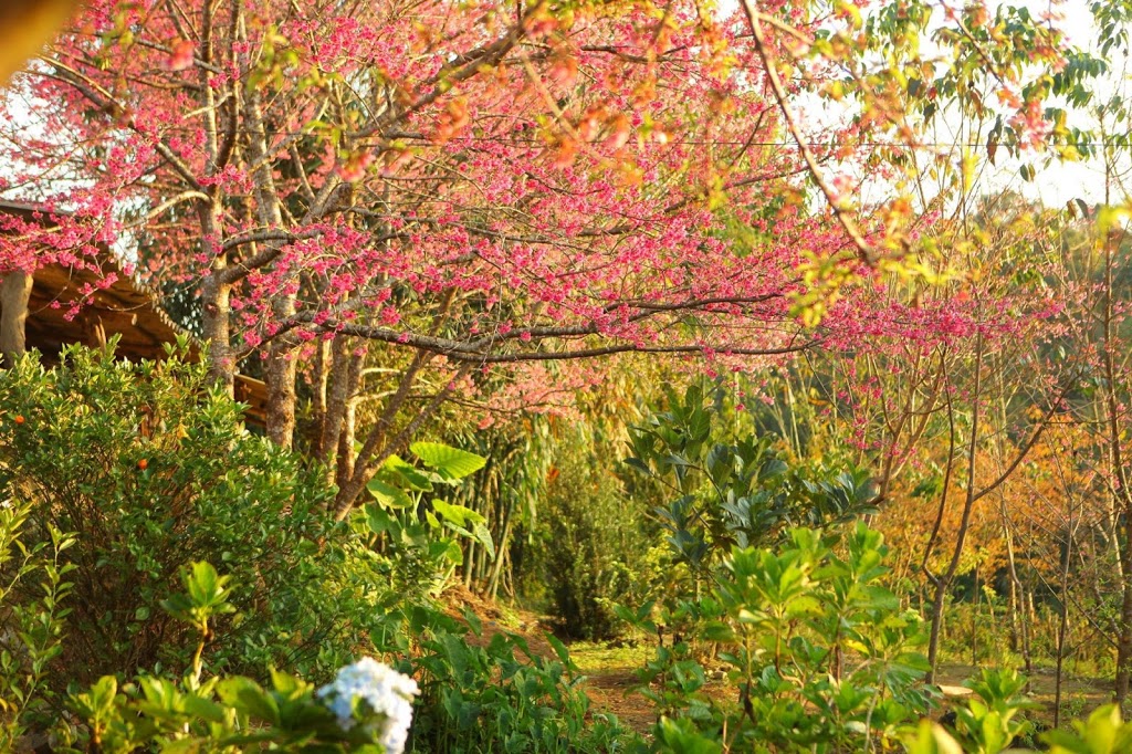 Hòn đảo hoa anh đào nằm ở phía Đông Điện Biên Phủ với độ cao trên 1.000m, đây được xem là vùng đất rất thích hợp cho sự sinh trưởng của loài hoa tuyệt đẹp này. Hoa có nguồn gốc từ Nhật Bản được trồng bạt ngàn, phủ khắp hòn đảo nhỏ, xen kẽ với diện tích trồng cỏ, cây xanh. Có tới hàng trăm gốc hoa anh đào của 20 giống khác nhau đồng loạt nở và khoe sắc mỗi độ xuân về.