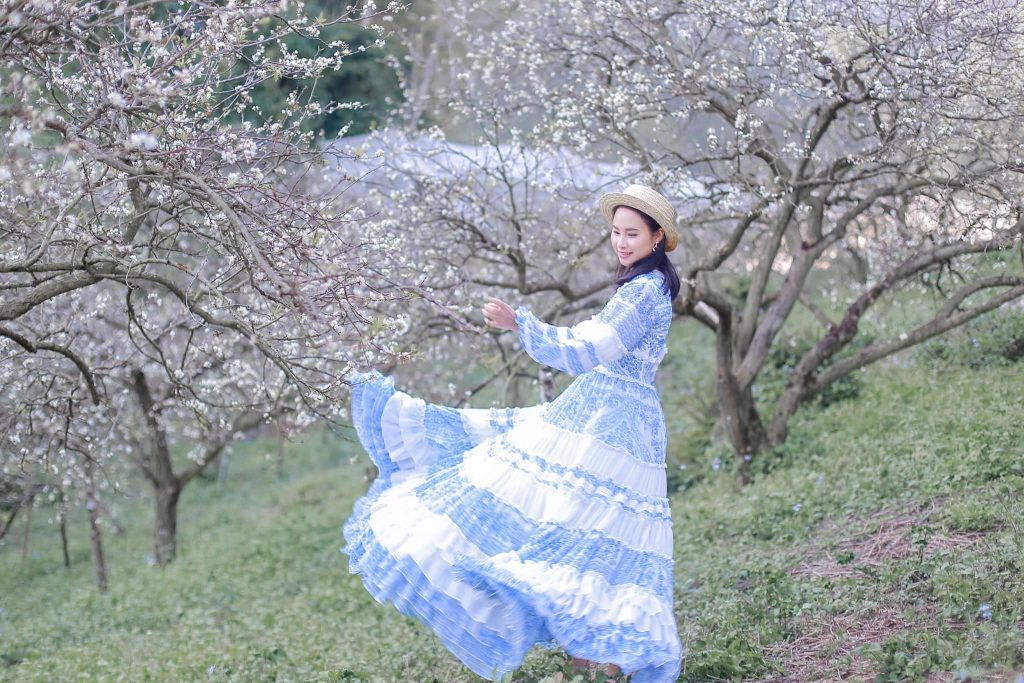 Lũ trẻ đùa vui giữa rừng mơ mộng mơ phủ đầy trắng xóa. Ảnh: VivuChẳng cần tạo dáng gì đâu, đứng yên một chỗ bên vườn mơ cũng đủ để bạn có tấm ảnh tuyệt mỹ. Ảnh: PYS Travel