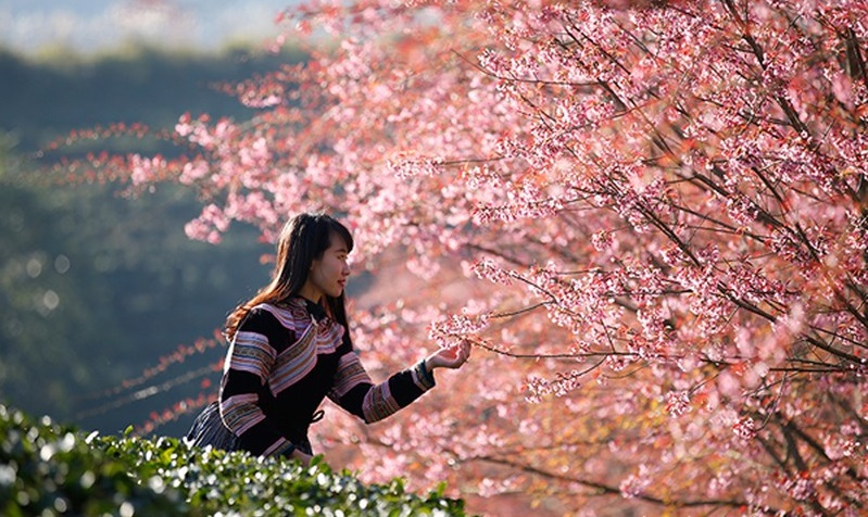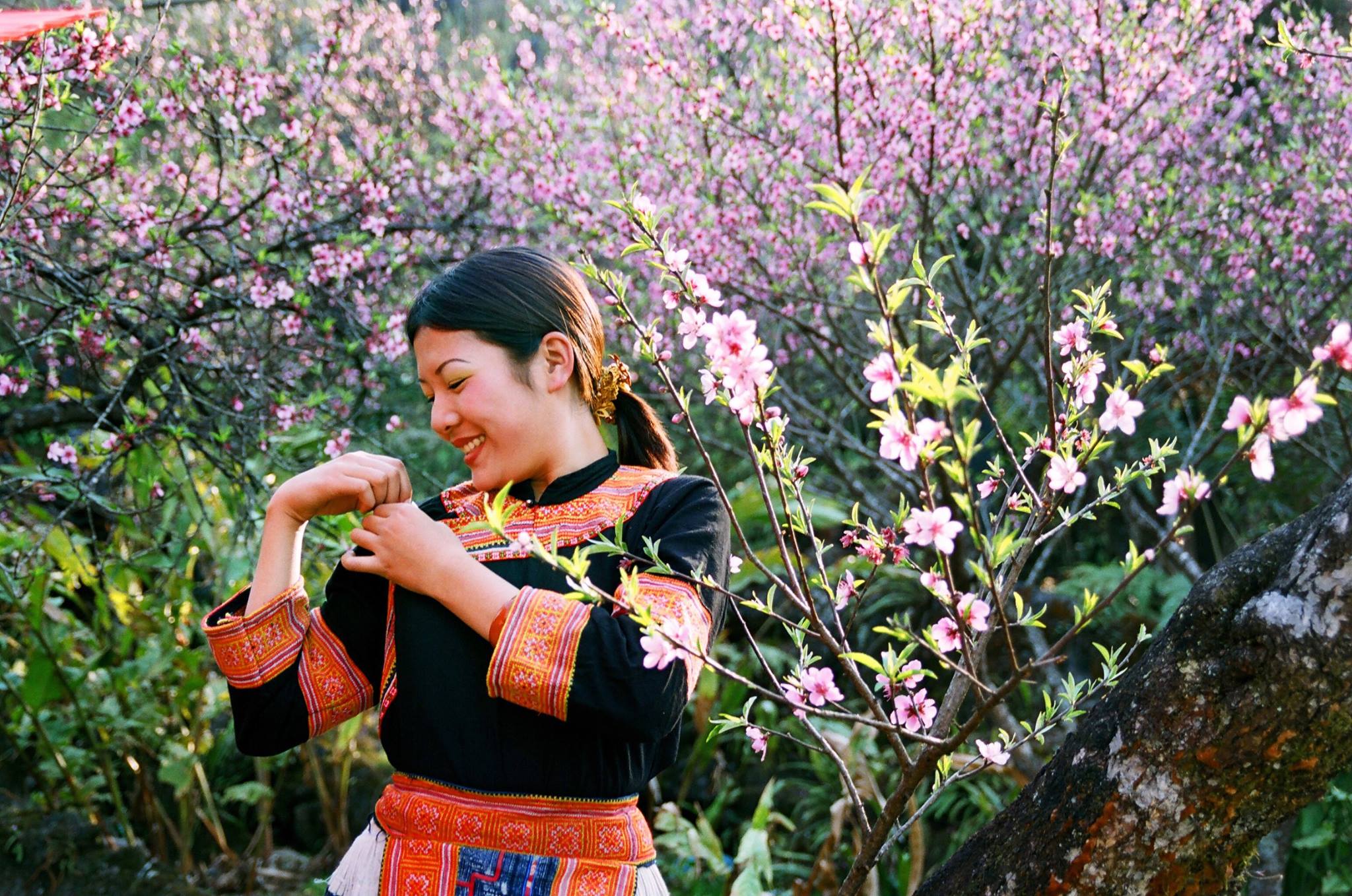 Sắc hoa đào mùa Xuân dịu dàng e ấp bên thiếu nữ đương thì. Ảnh: Vietnamtourism
