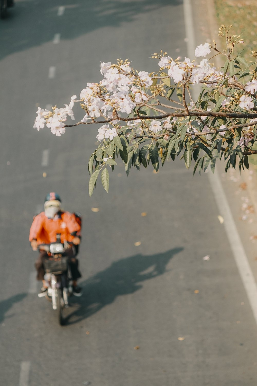 Màu hồng phớt của loại hoa được mệnh danh là "hoa anh đào" của Sài Gòn đang khoe sắc trên nhiều tuyến đường của thành phố, khiến ai đi qua cũng ngẩn ngơ đến lạ. Không chỉ giúp giảm bớt cái nắng gắt, những tán cây kèn hồng còn khiến Sài Gòn thêm phần thơ mộng. Nhìn thấy vẻ đẹp bồng bềnh của loài hoa này trên nền trời xanh, bạn sẽ cảm nhận được chúng mang đến một cảm giác tương tư, lưu luyến đến thẫn thờ.