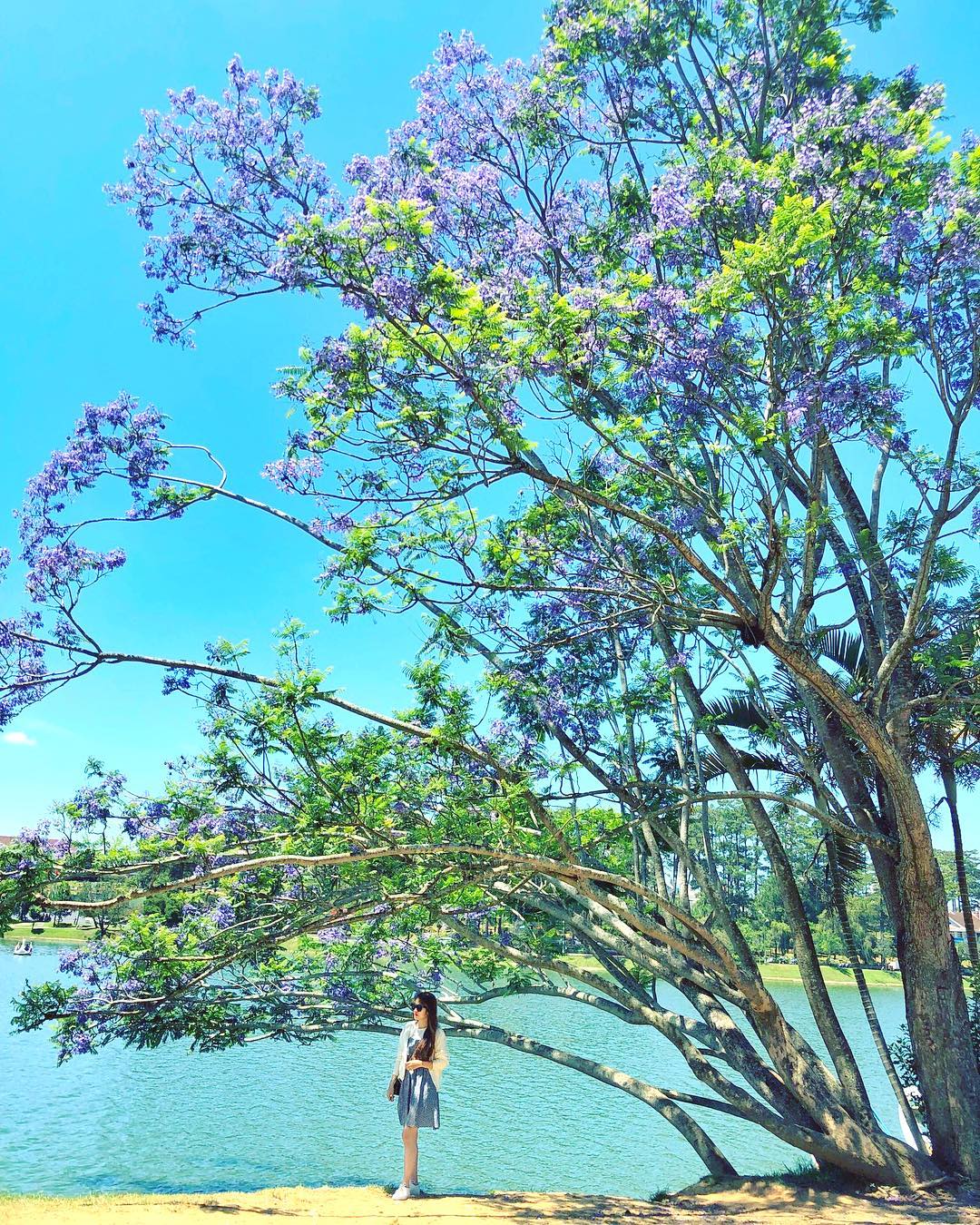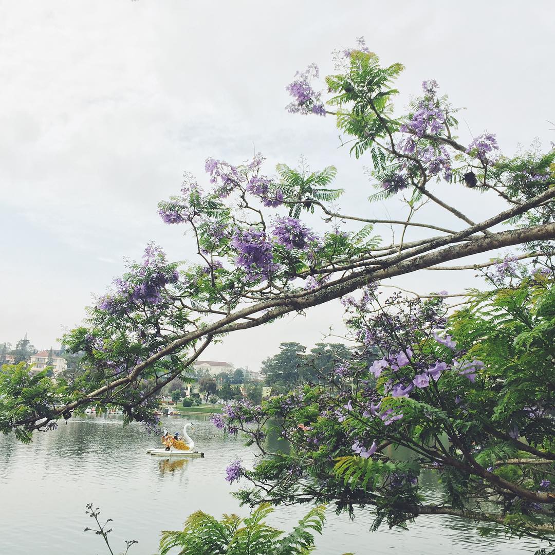 Địa điểm tiếp theo để ngắm hoa chính là khu vực Hồ Xuân Hương. Khi chưa đến mùa, cây hoa phượng tím lúc ấy nhường chỗ khoe sắc cho các loài hoa khác. Lúc ấy phượng tím là một màu tím xanh phủ bóng mặt hồ.