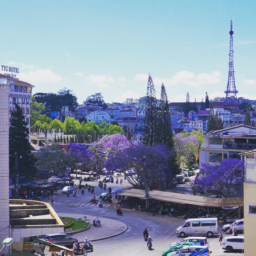 Một trong những địa điểm đầu tiên để ngắm hoa phượng tím cực đẹp chính là chợ Đà Lạt. Vì là nơi trồng loại hoa đặc biệt này đầu tiên nên cây nào cây nấy gốc rất to, tuổi đời cũng đã lâu. Mặc dù khu vực chợ Đà Lạt không có nhiều cây phượng tím, nhưng bạn có thể dễ dàng chiêm ngưỡng, chụp ảnh hơn những địa điểm khác.