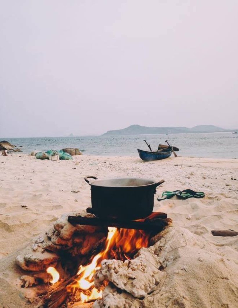 Bạn có thể nhóm bếp lửa lên để nấu nướng khi cắm trại trên bãi cát. (Ảnh: Travel)