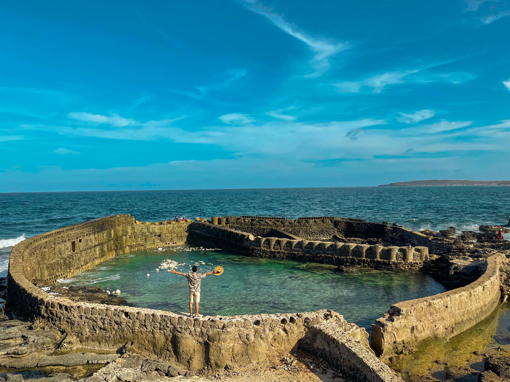 Nằm giữa làn nước biển xanh ngắt kết hợp với “hiệu ứng” sóng biển sủi bọt trắng xóa, từ mọi góc độ, bạn đều có thể phóng tầm mắt bắt những khung hình tuyệt vời đầy quyến rũ, có trời, có biển và có cả màu xám nâu cũ kỹ, bám rêu cổ kính của những bức tường chắn sóng. "Sống ảo" ở hồ cá làng Dương vào thời điểm bình minh hay hoàng hôn thì chắc chắn bạn sẽ có những bức ảnh đẹp nức lòng đấy!