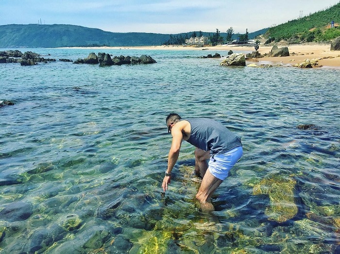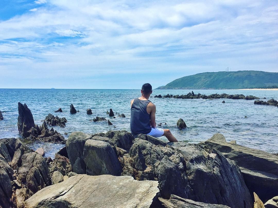 Bãi tắm Hoành Sơn hoang sơ và dân dã với những bãi đá nhấp nhô xen lẫn màu xanh của rêu, màu vàng trầm của vỏ ốc để lại sau mỗi đợt sóng vỗ, những dấu chân bò thủng thẳng dẫn nhau về. Bạn có thể di chuyển đến đây bằng ô tô hoặc tàu.