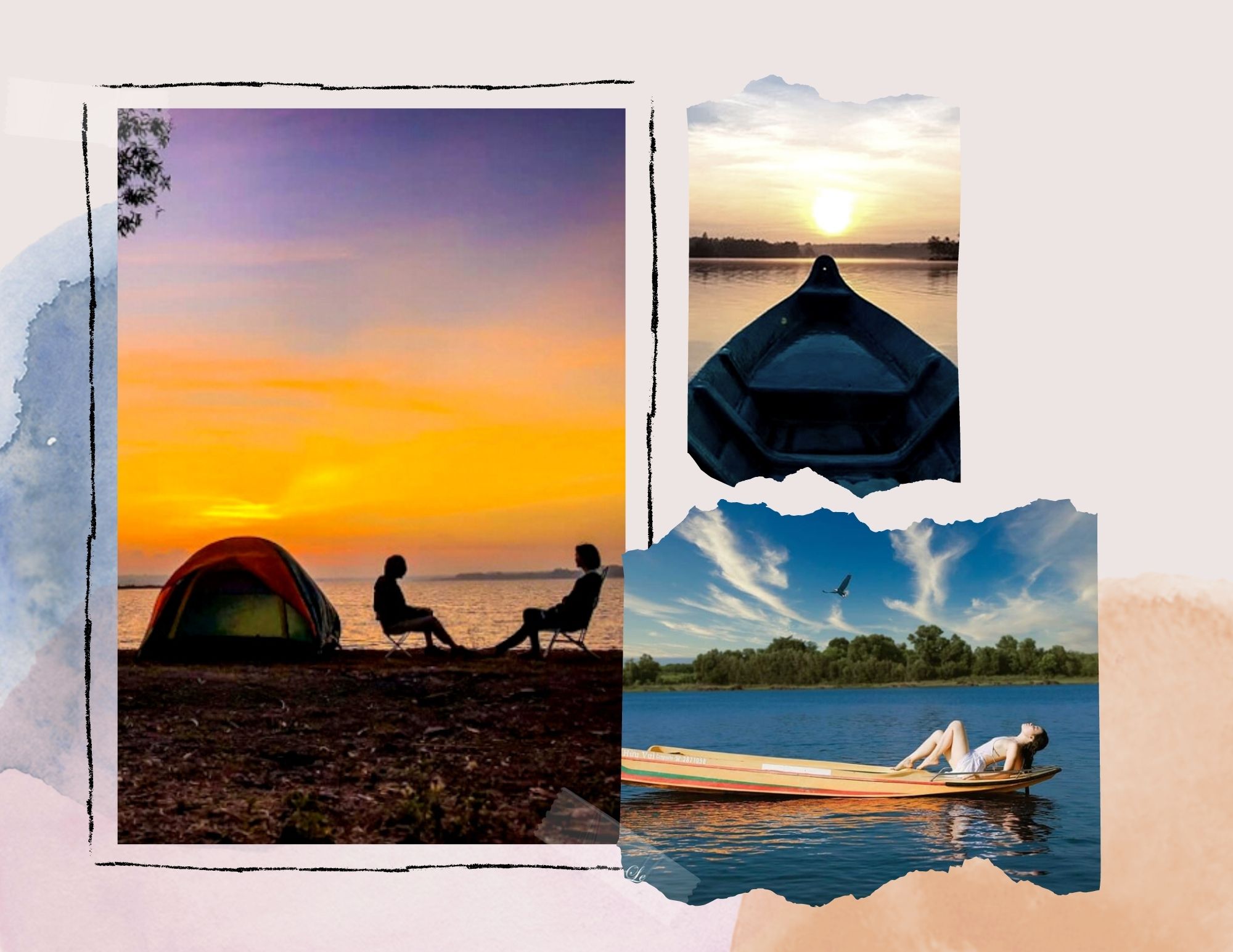 Thêm một nét đẹp độc đáo nữa thu hút du khách đến đây, chính là loại cỏ kim mọc đan xen với hoa dại màu tím nhìn thôi cũng đã thấy mê mẩn. Ngoài ra còn có rất nhiều loại chim bay dập dìu trên mặt nước như cò, diệc bay dập dìu. Thả mình giữa không gian rộng lớn, bạn sẽ thấy mọi muộn phiền, mệt mỏi, bụi bặm đều tan biến hết.